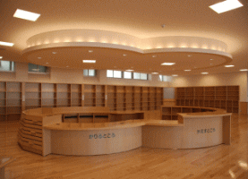 | 図書室カウンター、書棚 | |